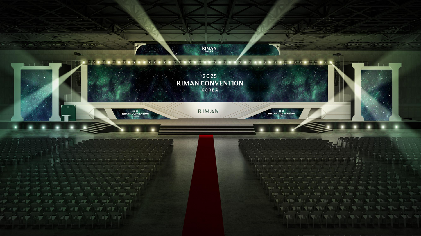2025 리만코리아 컨벤션 (RI:NAISSANCE)은 KINTEX 10홀에서 약 3,000여 명이 함께한 대규모 어워즈 행사입니다. 테마는 ‘RI:NAISSANCE(RIMAN+Renaissance)’로 브랜드의 부흥과 재도약의 이미지를 리만의 다음 성장 서사와 연결하는 키워드였기에, 이 메시지가 공간과 무대 전체에서 체감될 수 있도록 화면의 레이아웃과 콘텐츠 디자인을 설계했습니다.